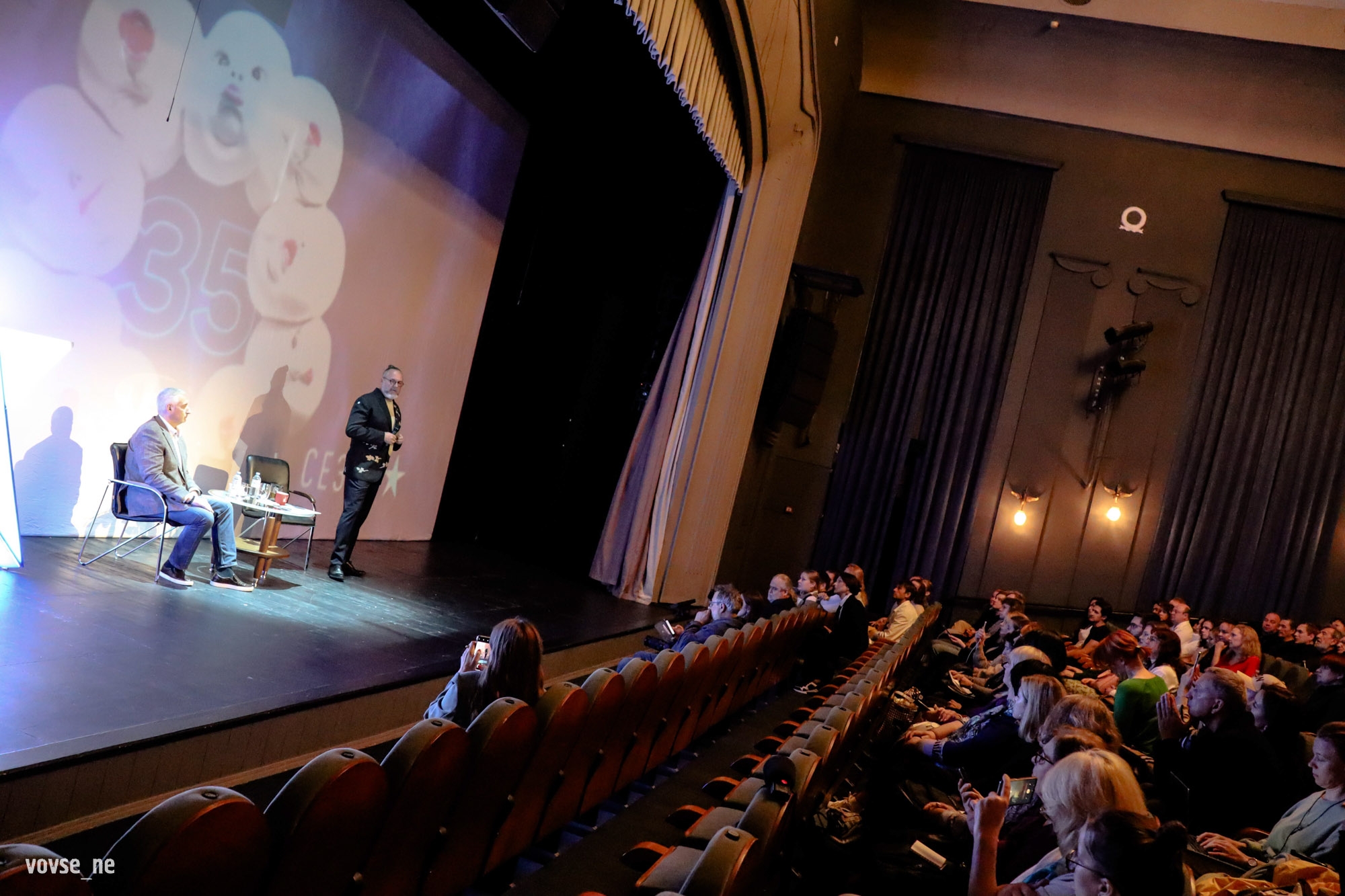 Дальнейшая речь директора касалась исключительно коллектива театра, и мы в её подробности вдаваться не будем. Завершил же свой спич Нестратов так: «Ещё раз поздравляю всех с открытием 35-го сезона. В сумме две цифры дают восьмёрочку, восьмёрочка — это бесконечность. Мы уверены, что сохраним все наши самые лучшие традиции, приумножим их, театр будет процветать — не без вашей помощи!»