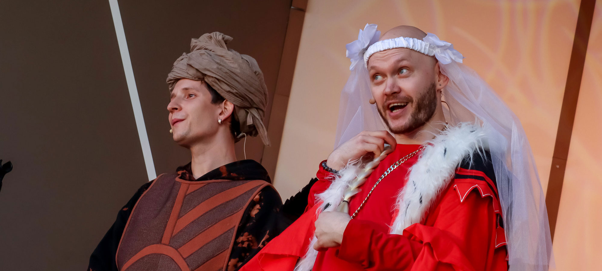 Поклонники фестиваля «Театральный бульвар» за два с хвостиком летних месяца видели уже если не всё, то очень многое. И удивить столичных театралов, казалось, нечем. Но, тем не менее, на развесёлый «Ахашверош-шпиль» от театра «Шалом» собралось куда больше народа, чем мог вместить небольшой импровизированный зрительный зал сцены на Чистопрудном бульваре. Потому как пропускать подобные мероприятия нельзя.