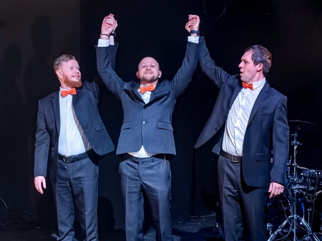 Впрочем, пора поговорить о плюсах действа — а они, безусловно, имеются, и немалые. Во-первых, это уже упомянутая мной живая музыка. «Вознесенский. Цветёт миндаль» — не мюзикл и даже не музыкальный спектакль, но готовьте уши, дабы наслаждаться.