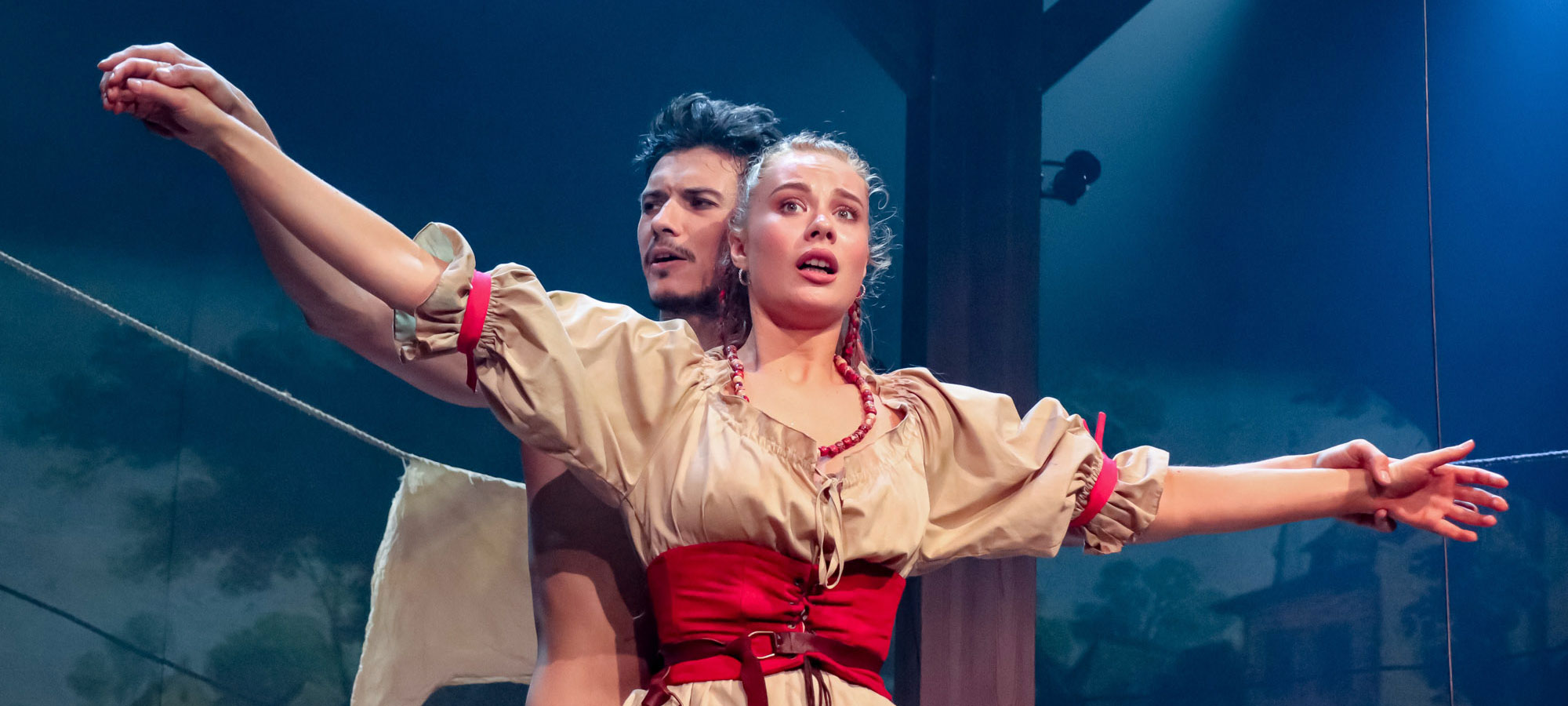 Впрочем, хорошо в зрительном зале будет визуалам: спектакль очень красив, и отдельный поклон я хочу отвесить даже не художнику-сценографу Анастасии Глебовой и дизайнеру костюмов Дарье Горшковой (хотя можно было бы), а крайне изобретательному художнику по свету Павлу Бабину, для которого свет — не просто инструмент, помогающий сделать постановку выразительнее, а отдельный язык, которым тоже можно говорить со зрителем.