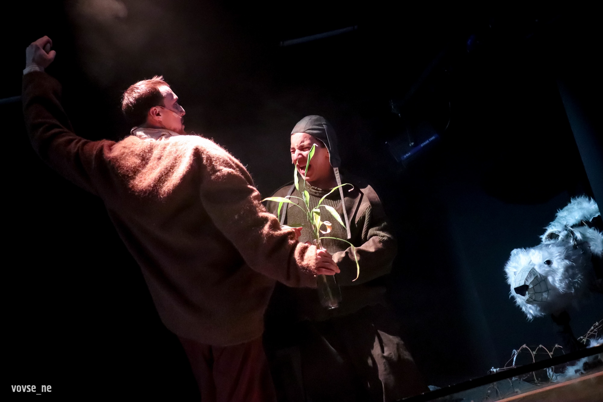 Илья Орлов филигранен и пронзителен в роли Голиафа (и это при том, что персонаж его — тишайший человек редкой флегматичности и спокойствия). Маленький винтик, вынужденный подчиняться системе — и, одновременно с этим, отдельная вселенная, существующая по своим собственным законам, не зависящим от окружающего хаоса. Голиаф делает свой выбор не убивать — и тем самым, жертвуя самим собой, позволяет проклюнуться росткам грядущего. Финальный монолог Голиафа — это превозмогание здравого смысла над войной, это оглушающие слова, высказанные почти шёпотом, это, наконец, актёрская победа Ильи Орлова, становящаяся убедительнейшей точкой спектакля.
