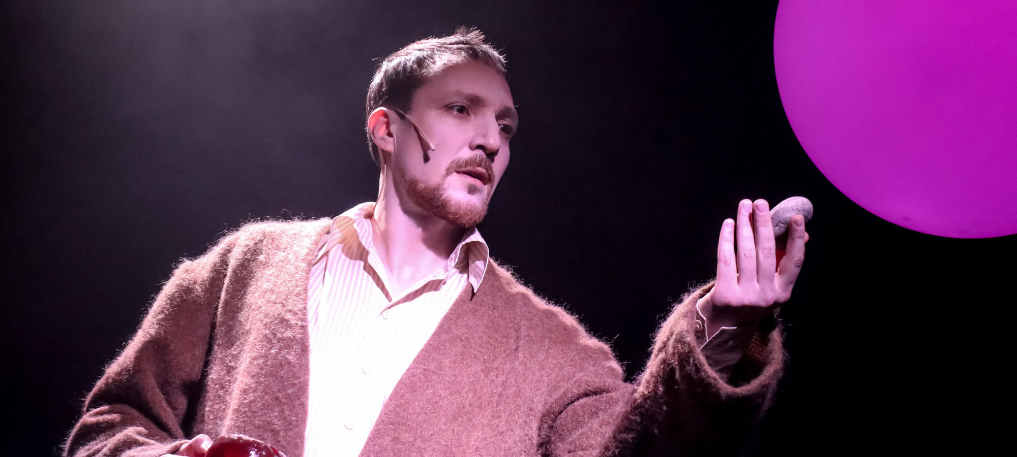 «Голиаф» — это превосходный актёрский ансамбль, простая, но выразительная сценография Маруси Павловой (ах, какое там звёздное небо!..), музыка Димы Рессера и Ильи Шарова, которая, равно как и пластика Саши Колосовской, является неотъемлемой и важнейшей частью постановки… Ну, и, конечно, фирменный оригинальный взгляд режиссёра на происходящее — и это тот самый «концентрированный Саша Золотовицкий», которого мне жаждалось видеть.