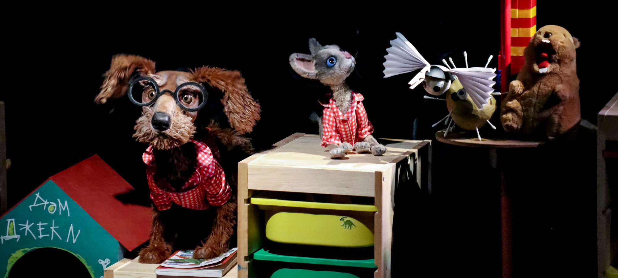 Управление очень живыми и обаятельными куклами доверено Полине Малаховой (девочка Нина), Лине Бодрой (мальчик Костик), Алексею Смирнову (собака Джеки), а также Анне Анфертьевой / Виктории Антоновой (котёнок Кронос). Мама (Евгения Бушуева) и папа (Алексей Тимошин) работают живым планом, что придаёт происходящему дополнительной теплоты и достоверности.