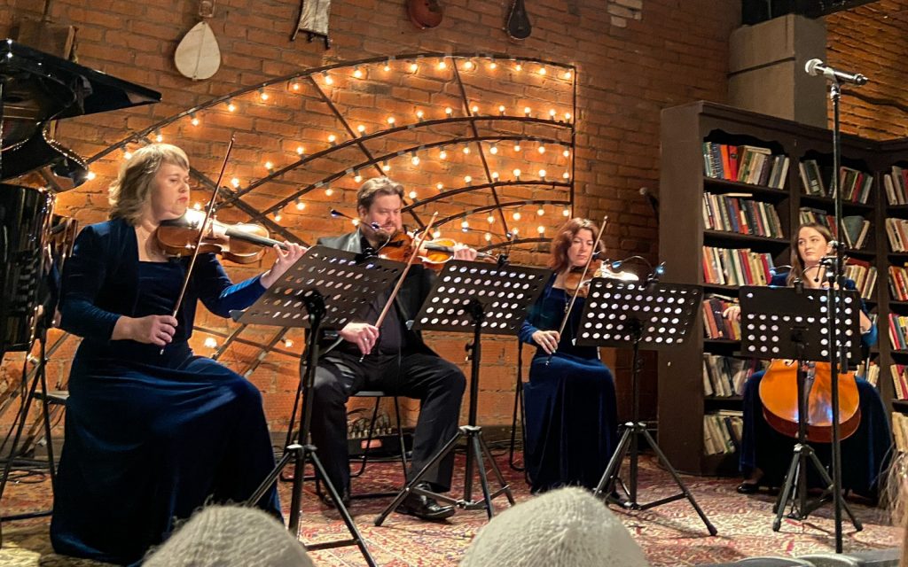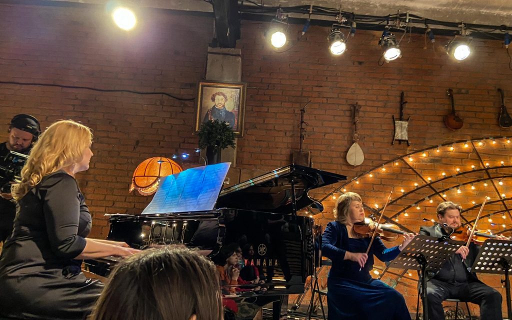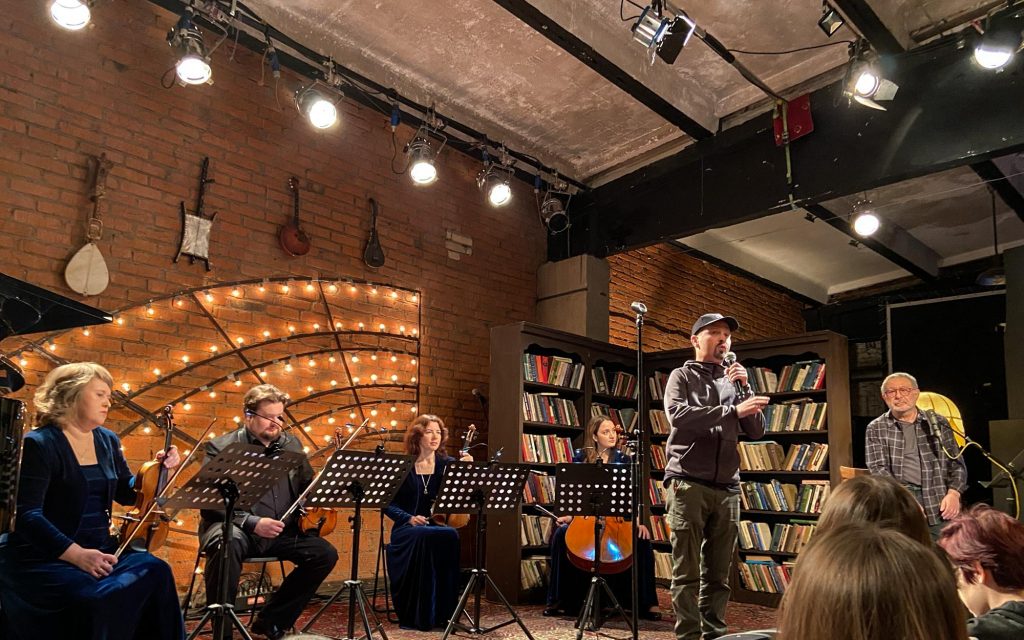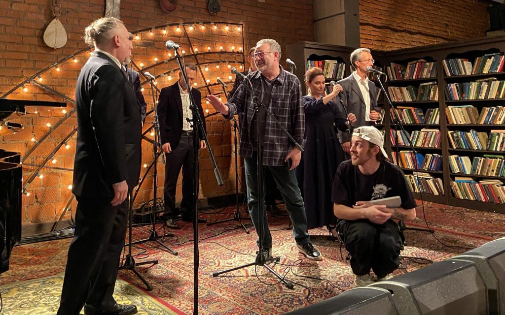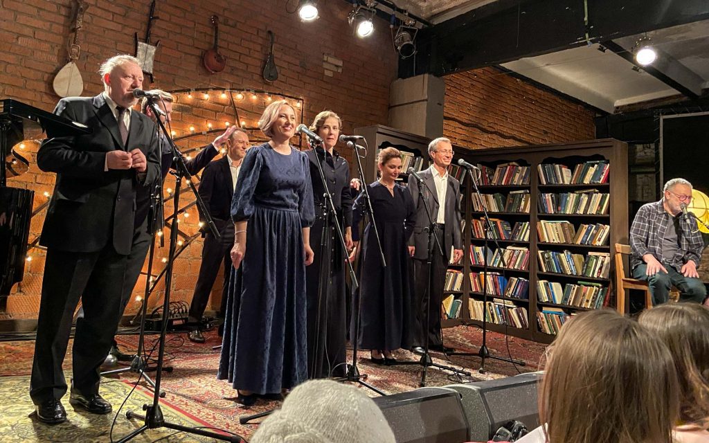 Затем квинтет музыкантов покидает студию, и выходят они — восьмёрка мощных. Те, кто (с некоторыми переменами в составе, но всё же) уже несколько лет (батюшки, я впервые оценила это аж в 2014-м… Мне казалось, это случилось позже…) дарит нам концертную версию «Норд-Оста». Перечисляю поимённо: Алексей Бобров, Антон Арцев, Пётр Маркин, Юрий Мазихин, Виктория Соловьёва, Ирина Линдт, Алексей Россошанский и Лидия Чебоксарова. Плюс бессменный концертмейстер, властительница клавиш Анастасия Зимина.