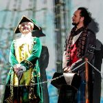Минимум декораций и реквизита (ну, вы ж помните: как я и люблю), вполне себе симпатичные костюмы, забавная постановка… Зато странноватое либретто — и это я даже не про введённую в сюжет любовную линию (да-да, какой же мюзикл без чувств, знаем-знаем), а про, скажем, затягивающего в самый ответственный момент проникновенную песню Трелони (у него племянницу в плен взяли, вокруг пираты с пистолетами наперевес, всё плохо — а он соловьём разливается) или то оказывающихся на плоту, то снова в неволе у пиратов Джима и Энни.