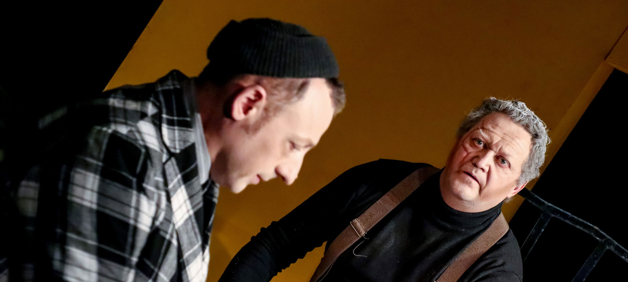 Итак, простая, казалось бы, история: Англия, некий дом, неухоженный и неотремонтированный. Трое действующих лиц, одно странней другого: братья Мик (Артём Чурбаков) и Астон (Олег Ермолаев), полные антиподы, которые даже и на сцене-то одновременно почти не появляются, а также маргинализированный Дэвис (Виктор Чариков), пожилая личность без работы и дома. Оба брата, так уж получается, предлагают Дэвису стать сторожем вышеупомянутого дома, а тот, не будь дурак, решает занять место одного из братьев — в квартире, жизни и даже сердце сиблинга.