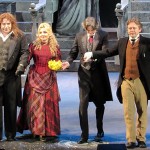 Епископ Бейсингсток — Александр Бобровский. А вот и наши в городе… Ребят, это было нечто неописуемое. Мы заранее представляли себе это: как Хайд пытается придушить эдакую глыбину. Фигушки: вышел трясущийся, сгорбленный старец, еле-еле переставлял ноги, чуть не рассыпался прямо на сцене… И при этом ну ТААААК смотрел на девушек из балета, ТААААК требовал кающуюся Магдалину, ТААААК спешил «в другое кабаре», что вот не жалей бы я людей, сидевших за мной, встала бы — и стоя аплодировала безостановочно. Друзья мои, кажется, удовольствие получил и артист, и зрители. А в финале мы дружно и взатяг закурили… Жалко, что епископа убивают в конце первого акта, право, жалко. И пусть сутана была коротка — зато можно было всячески изучить белые носочки. Ну, и определённой игривости это епископу добавляло. В общем, так: кто не видел — пусть рыдает. Александр Алексеевич — он великолепен. А что касается повторения данной разовой акции — лично я не уверена. Всё же, слишком харизматичное и яркое комедийное пятно проникло в серьёзную ткань повествования. Да, оно невозбранно круто (а не умеет Бобровский иначе). Но неправильно это — когда второстепенный персонаж, епископ, перетягивает на себя всё внимание зала, сам того не желая. Ибо — талантище. Пусть Аттерсоном лучше, а?.. Ну, или все пусть жгут.