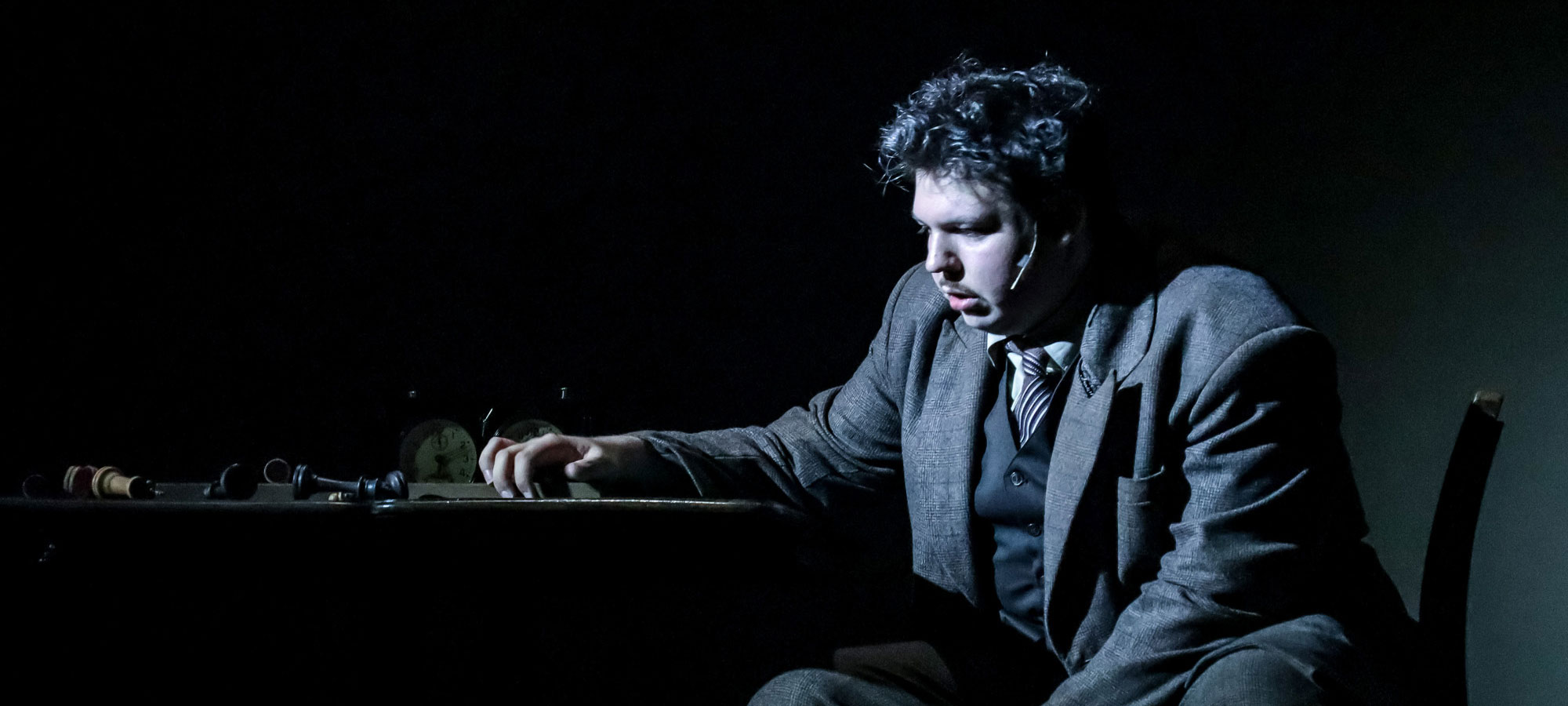 Владимир Данай недрогнувшей рукой вычёркивает из своей инсценировки всё, что касается детства главного героя (а это добрая треть книги). Воспоминания о маленьком Лужине-вундеркинде, конечно же, будут — мы услышим их из уст уже взрослого шахматиста, там, где они необходимы для раскрытия повествования. Но Даная интересует Лужин как таковой — не становление его личности, а уже сложившийся персонаж, с его нетривиальным мышлением, страстью к шахматам и ярко выраженными аутическими чертами (а я — из числа тех, кто, спасибо Набокову, ясно видит таковые у Лужина).