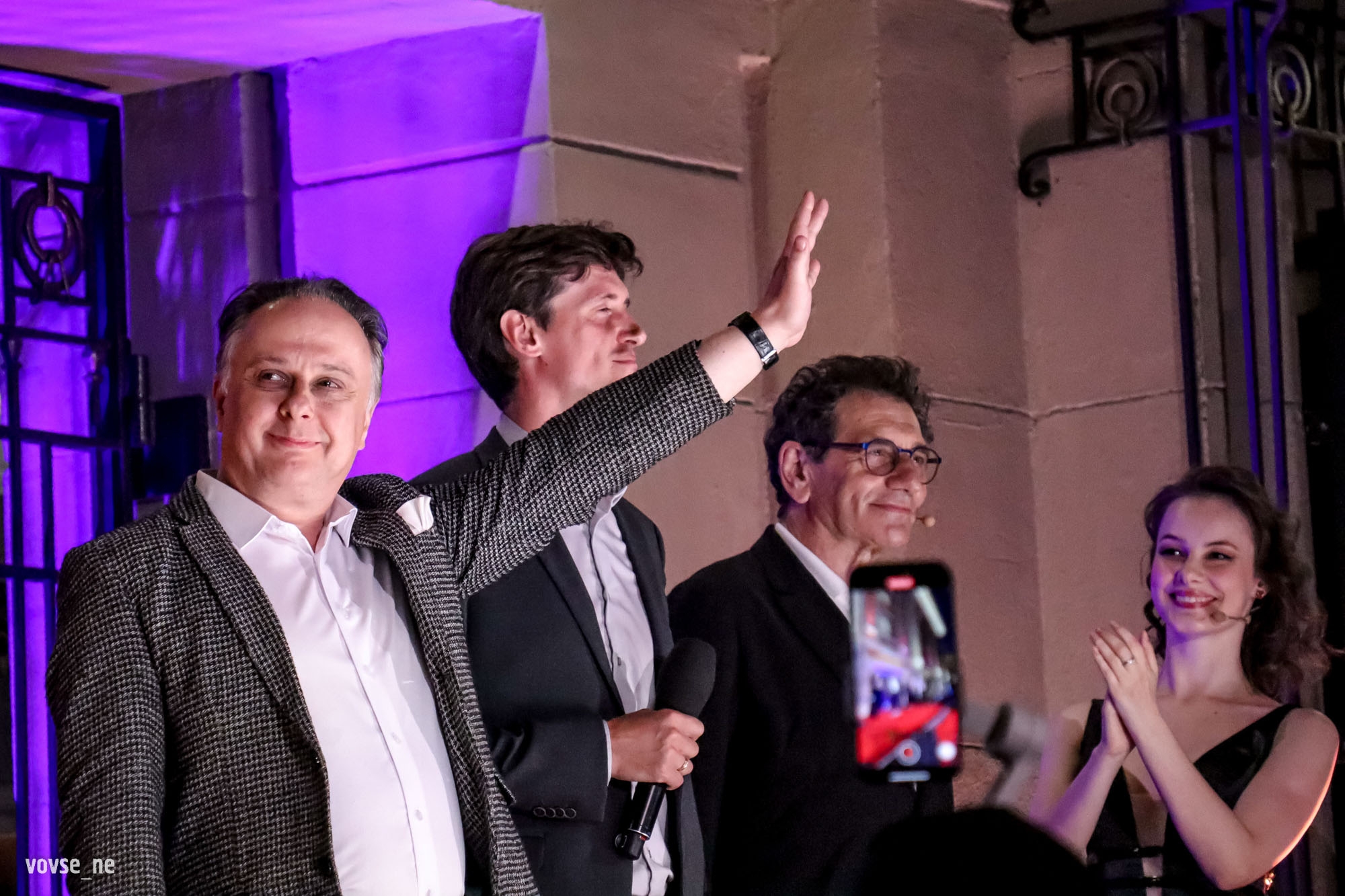 Ведущими вечера стали народный артист России Евгений Князев и заслуженная артистка России Анна Дубровская. Они погружали публику в историю театра, сообщали разнообразные интересные факты и, конечно же, осведомляли, кто перед нами выступит. А я сразу же хочу выразить своё восхищение звукорежиссёру Руслану Кнушевицкому и его команде: выстроить звук на уличном концерте так мастерски могут только исключительные профессионалы.